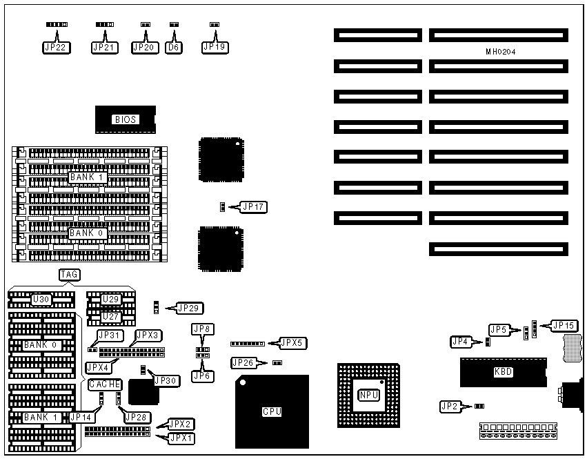 Note: Jumpers JPX1-JPX4 are closed using one or two 8-pin terminating resistors.