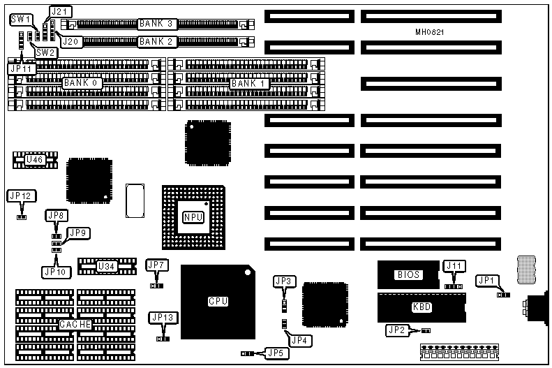 Note:36-bit SIMM banks 2 & 3 are not installed on some board versions. | ||||