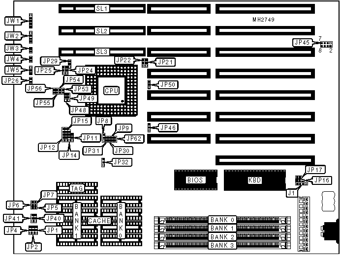 Note: Pins designated should be in the closed position. SL80486DX/DX2 is only available on the AH4T mainboard