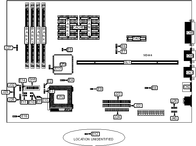 Note: Pins designated should be in the closed position. The location of E12 is unidentified. The above jumpers may not be present on all boards. If these jumpers are not present, only Intel CPUs may be used.