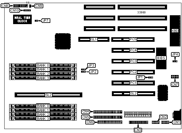 Note: Board accepts EDO memory. Board also accepts x 32 SIMMs. Banks are interchangeable. |
