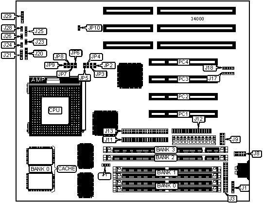 Note: Board accepts EDO memory. Banks 0 & 1 are interchangeable.