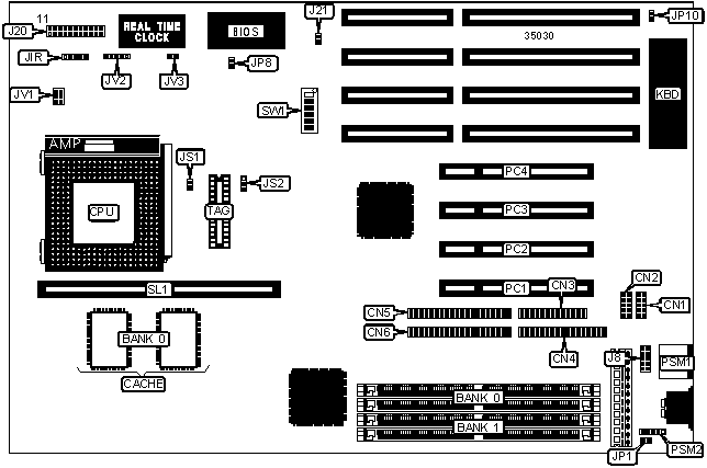 Note: Board accepts EDO memory. Banks are interchangeable. | ||