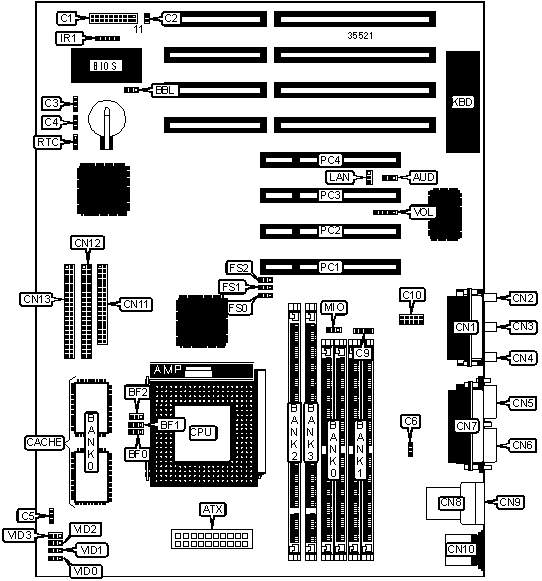 Note: Board accepts EDO memory. Do not install SIMMS & DIMMs at the same time.
