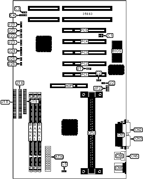 32-bit PCI slots (5), floppy drive interface, green PC connector, IDE interfaces (2), parallel port, PS/2 mouse port, serial ports (2), IR connector, USB connectors (2), ATX power connector, AGP slot, SB-link connector, wake on LAN connector