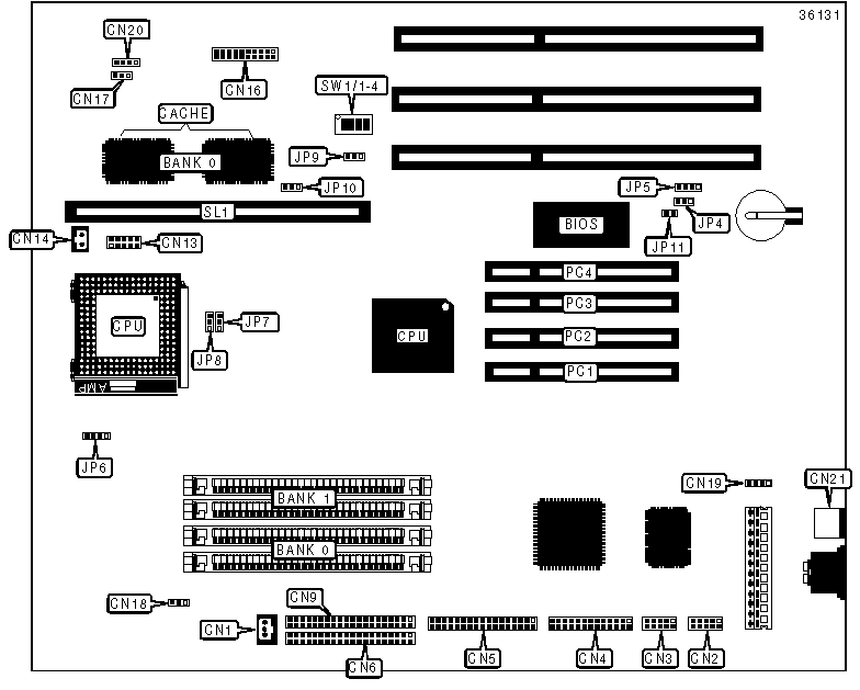 32-bit ISA slots (3), 32-bit PCI slots (4), bus mouse port, PS/2 keyboard port, serial ports (2), parallel port