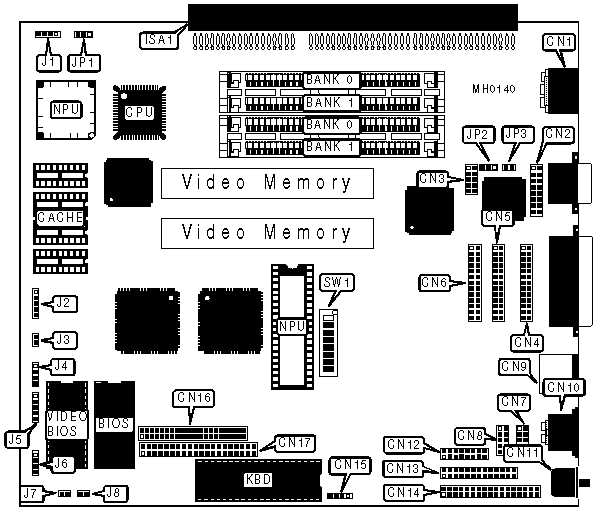 Bus mouse port, external keyboard connector, floppy interface, game port, IDE interface, parallel ports (3), serial ports (2), VGA port, Video port (TTL) |