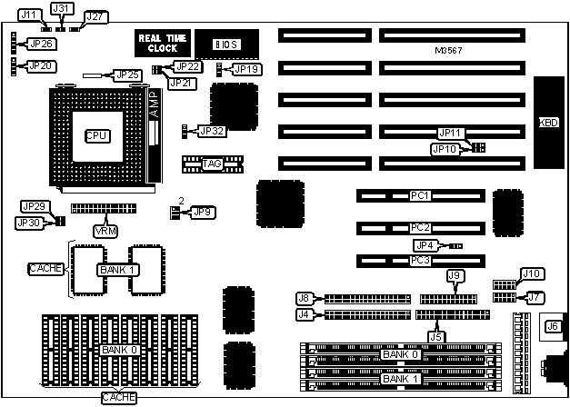 Note: Board accepts EDO memory. Banks are interchangeable.