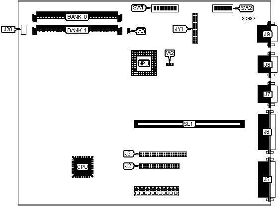 Floppy drive interfaceIDE interface, parallel port, serial ports (2), VGA feature connector, VGA port, TTL video port, riser slot