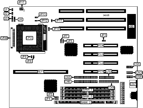 32-bit PCI slots (4), floppy drive interface, green PC connector, IDE interfaces (2), parallel port, PS/2 mouse port, serial ports (2), cache slot, IR connector, VRM connector, USB connector |