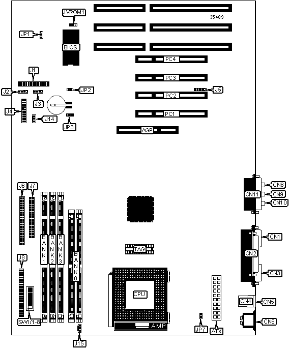 32-bit PCI slots (4), floppy drive interface, game port, IDE interface, parallel port, PS/2 mouse port, serial ports (2), ATX power connector, AGP slot, USB connectors (2), wavetable connector, audio in-CD-ROMs (2), microphone in, speaker out, line in |