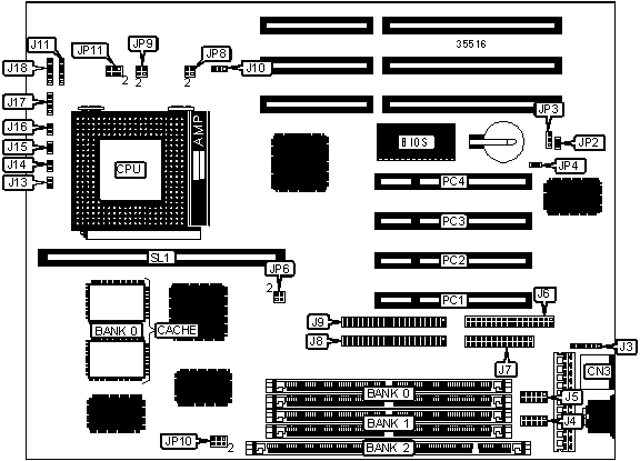 Note: Board accepts EDO memory. Board also accepts x 32 SIMMs. Banks 0 & 1 are interchangeable.