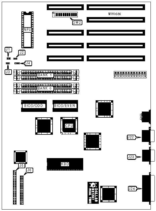 Floppy drive interface, IDE interfaces (2), parallel port, serial ports (2)