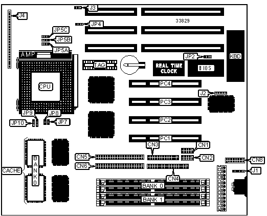 Note: Board accepts EDO memory. Board also accepts x 32 SIMMs. Banks are interchangeable. | ||
