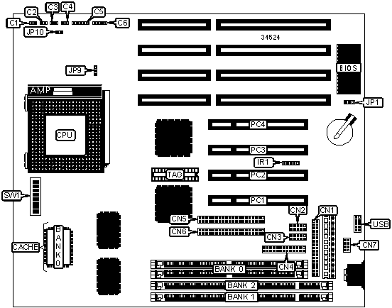 Note: Board accepts EDO memory. Memory installed in Banks 1 & 2 is interchangeable. | |||