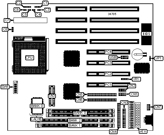 Note: Board accepts EDO memory. If SDRAM DIMMs are used in bank 1 or bank 2, bank 0 must be empty.