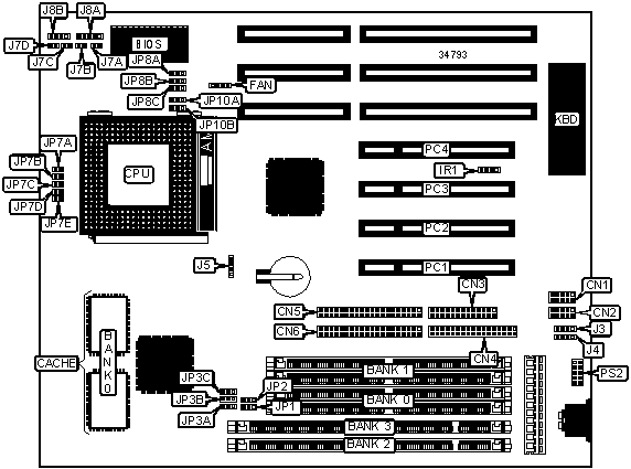 Note: Board accepts EDO & SDRAM memory. Banks 0 & 1, 2 & 3 are interchangeable.