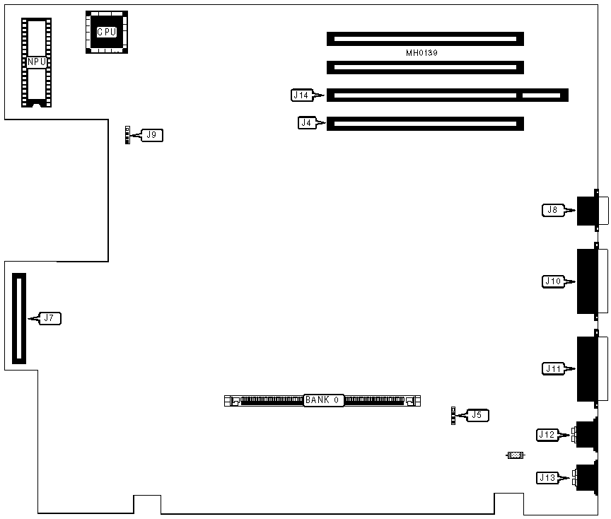 Serial port, parallel port, pointing device connector, MCA video card slot,video port, hard drive interface slot, floppy drive interface slot