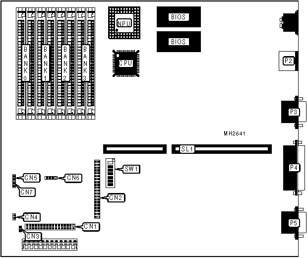 Floppy drive interface, IDE interface, parallel port, PS/2 mouse port, serial port, VGA port