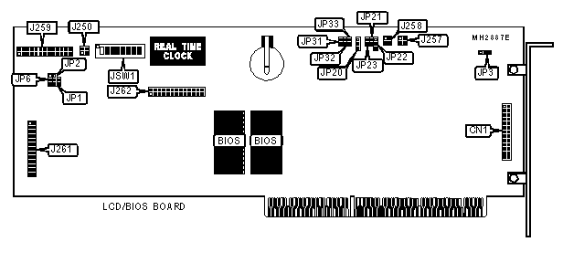 LCD/BIOS slot, local bus slots, external memory card, external processor board, serial ports (2), parallel port, PS/2 mouse interface, floppy drive interface, IDE interface, LCD interface |