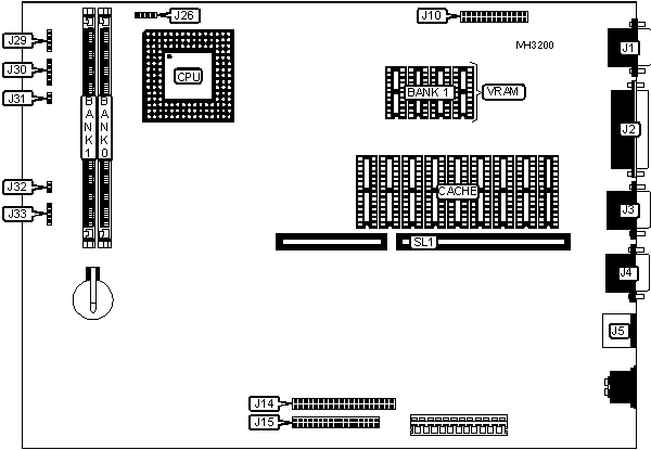 Note: The locations of J22, J23, J24 & J25 are unidentified. The location of the PQFP socket is unidentified.