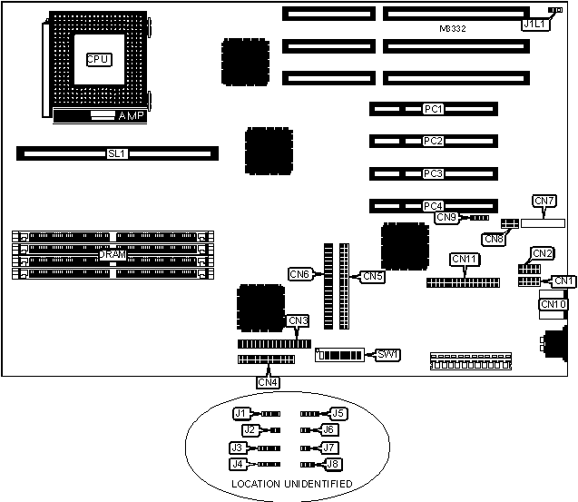 Note: Board accepts EDO memory. The orientation of the banks is unidentified. | ||