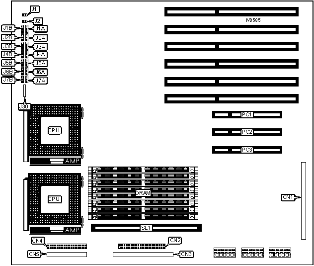 32-bit PCI slots (3), floppy drive interface, IDE interface, parallel port, VGA port, PS/2 mouse port, backplane connector, riser board, cache slot |