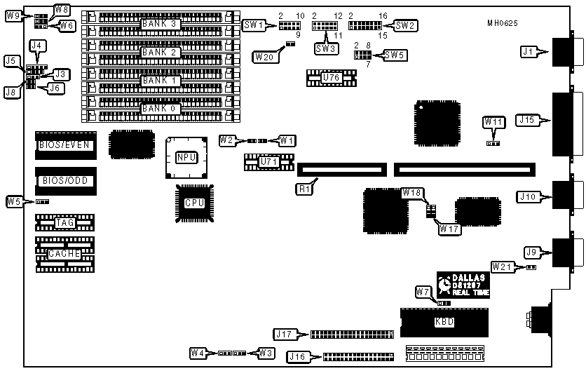 Note:DRAM jumper configurations correlate directly to memory configurations.
