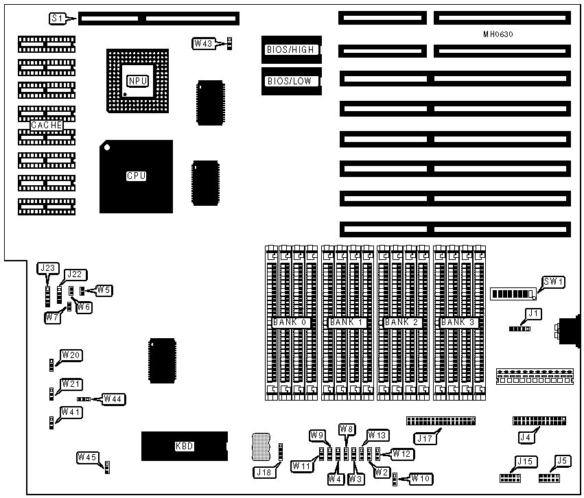 Note 1 :Use this setting when banks are populated with (4) 256K x 9 SIMMsNote 2 :Use this setting when banks are populated with (4) 1M x 9 SIMMsNote 3 :Use this setting when banks are populated with (4) 4M x 9 SIMMs | |||||