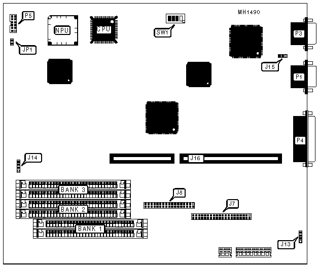 parallel port, proprietary ISA riser card slot, serial port, VGA port