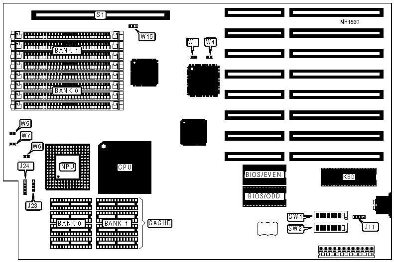 Note:Banks 2 & 3 are located on a memory expansion card that fits in the 32-bit expansion slot.