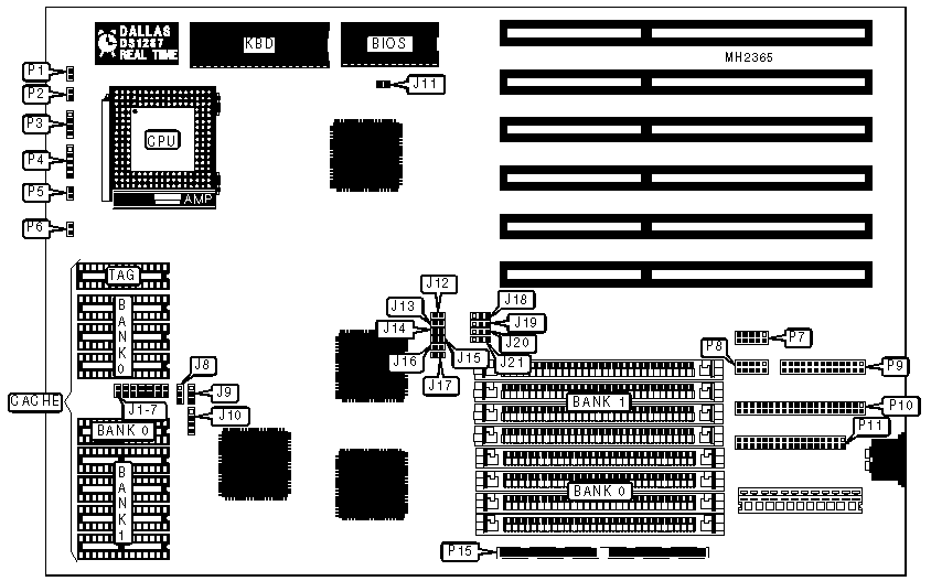 External memory card, floppy drive interface, IDE interface, parallel port, serial ports (2)