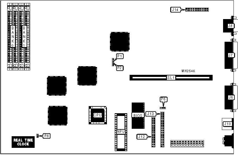 Floppy drive interface, IDE interface, parallel port, PS/2 mouse port, serial port, VGA feature connector, VGA port |