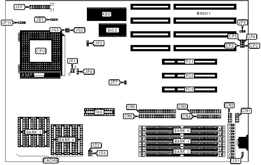 32-bit PCI slots (3), floppy drive interface, green PC connector, IDE interfaces (2), parallel port, serial ports (2)