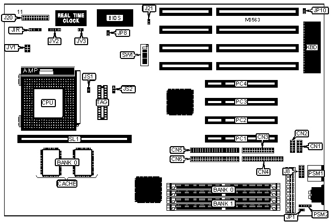 Note: Board accepts EDO memory. Banks are interchangeable. | ||