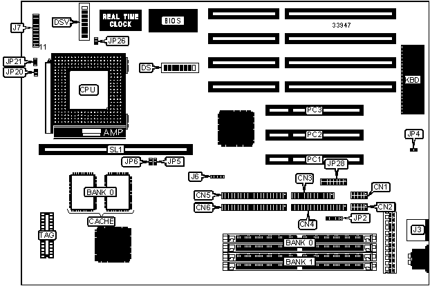 Note: Board accepts EDO memory. Banks are interchangeable.