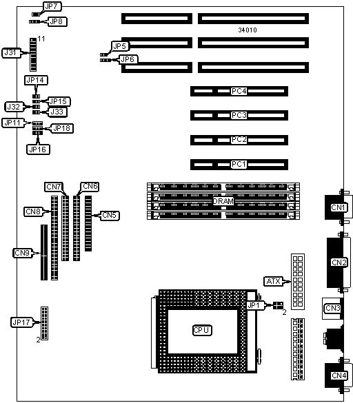 Note: Board accepts EDO memory. Board also accepts x 32 SIMMs. The location of banks 0 & 1 are unidentified.