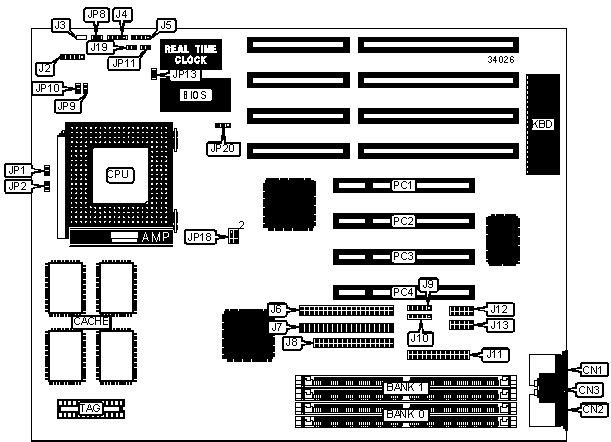 Note: Board accepts EDO memory. Board also accepts x 32 SIMMs. Banks are interchangeable. | ||