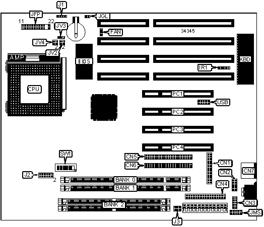 Note: Board accepts EDO memory. Banks 0 & 1 are interchangeable.