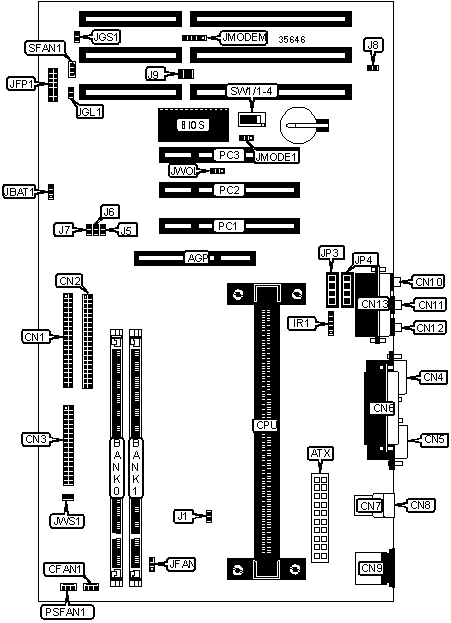 32-bit PCI slots (3), floppy drive interface, IDE interfaces (2), parallel port, PS/2 mouse port, serial ports (2), IR connector, USB connectors (2), ATX power connector, AGP slot, line in, line out, speaker out, game/MIDI port |