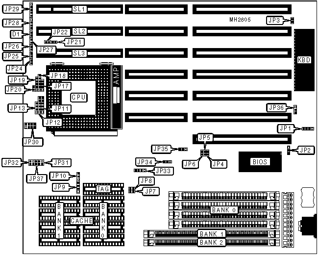 Note: In order to use the daughter board, remove jumpers from JP30 and install the daughter board on jumpers JP30, JP31, JP32 and JP37. |
