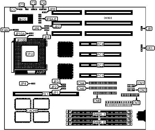 32-bit PCI slots (4), floppy drive interface, IDE interfaces (2), parallel port, serial ports (2), cache slot