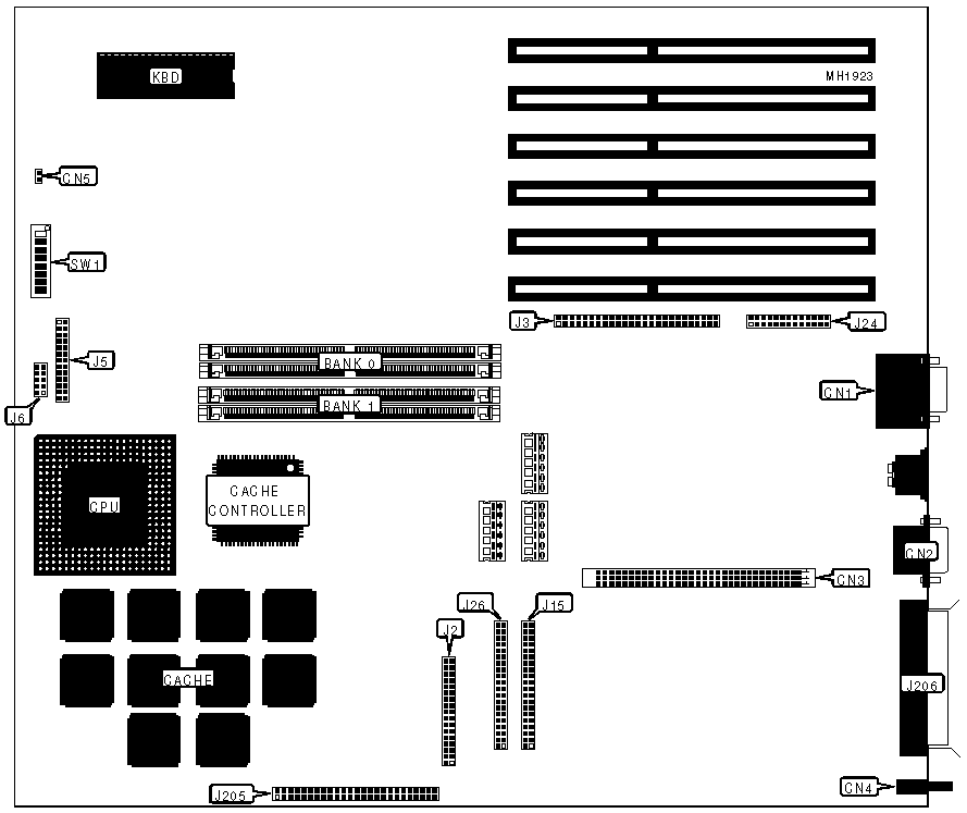 Floppy drive interface, IDE interfaces (2), internal video board connector, parallel port, SCSI ports (3), serial ports (2)