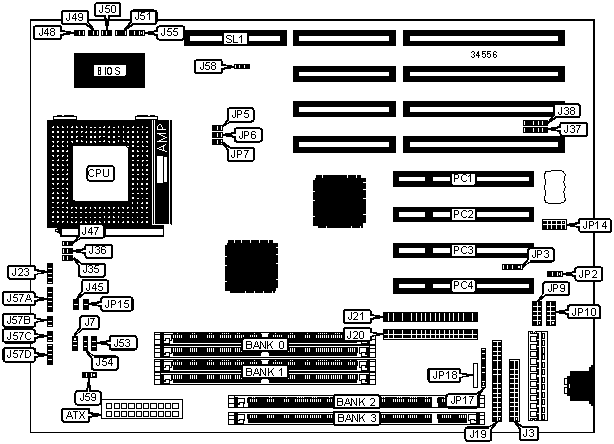 Note: Board accepts EDO memory. Do not populate banks 0 & 2 at the same time. Use only FPM/EDO in bank 0.