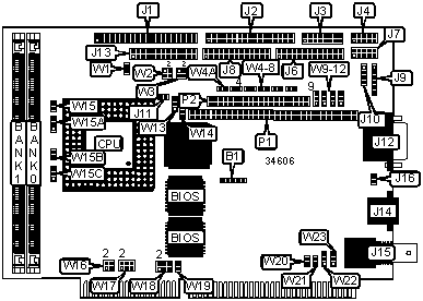 Ethernet 10Base2 connector, Ethernet 10BaseT connector, floppy drive interface, green PC connector, IDE interface, parallel port, PS/2 mouse interface, serial ports (2), VGA feature connector, VGA port, flat panel connector, PC/104 interface (2)