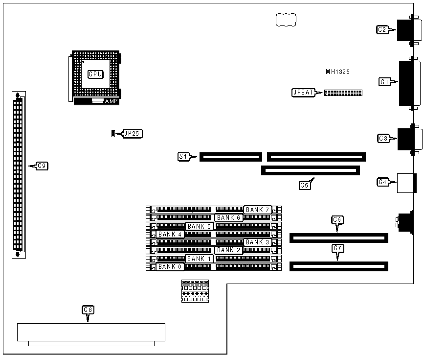 16-bit riser card slot, bus mouse port, floppy drive interface, LAN module, parallel port, SCSI module, serial port (2), VGA feature connector