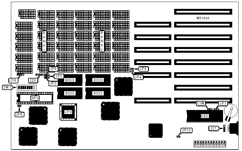 Note:Jumper and switch locations may vary per system board. | |||