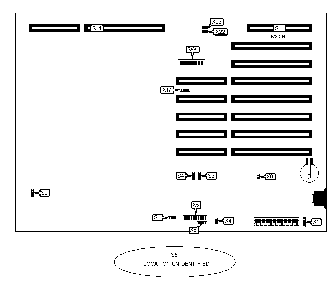 The location of pin 1 on all jumpers and the switch is unidentified.