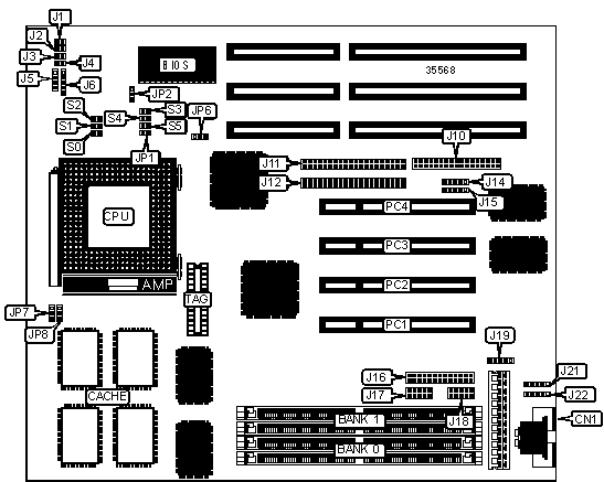 Note: Board accepts EDO memory. Banks are interchangeable. | ||