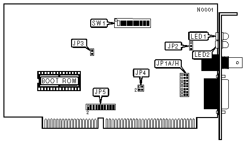 Note: If the card is on either end of a linear bus network segment, the onboard terminator may be used instead of using an external terminator.